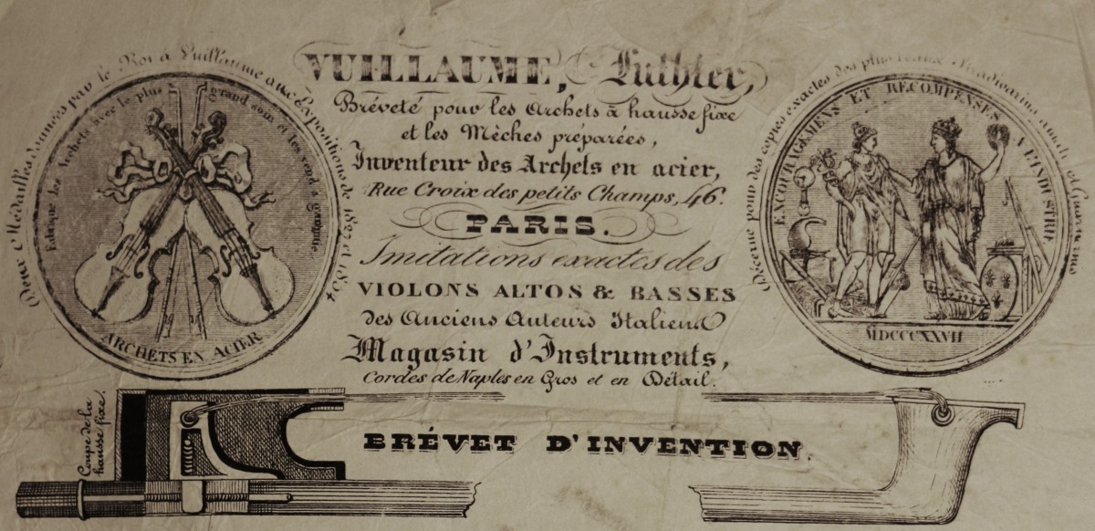Niccolo Paganini 26th February 1834 “Permit me to bring your attention to my opinion of the steel bows invented by M. Vuillaume, which your newspaper has already mentioned…these new bows are infinitely preferable and quite superior to those of wood. They offer an evenness of resistance in the whole length of the bow which I have not found in other bows and also a certain suppleness which enables one to obtain precision in all qualities of sound…”