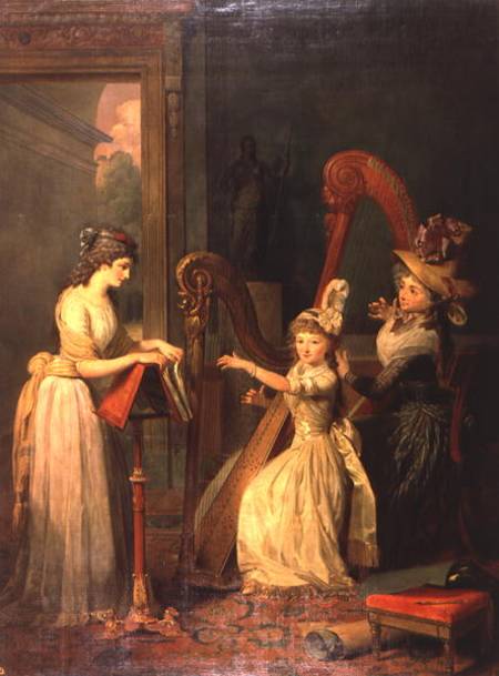 Stéphanie Félicité Ducrest de St-Aubin, comtesse de Genlis, giving a harp lesson to her ward (actually her daughter), Pamela