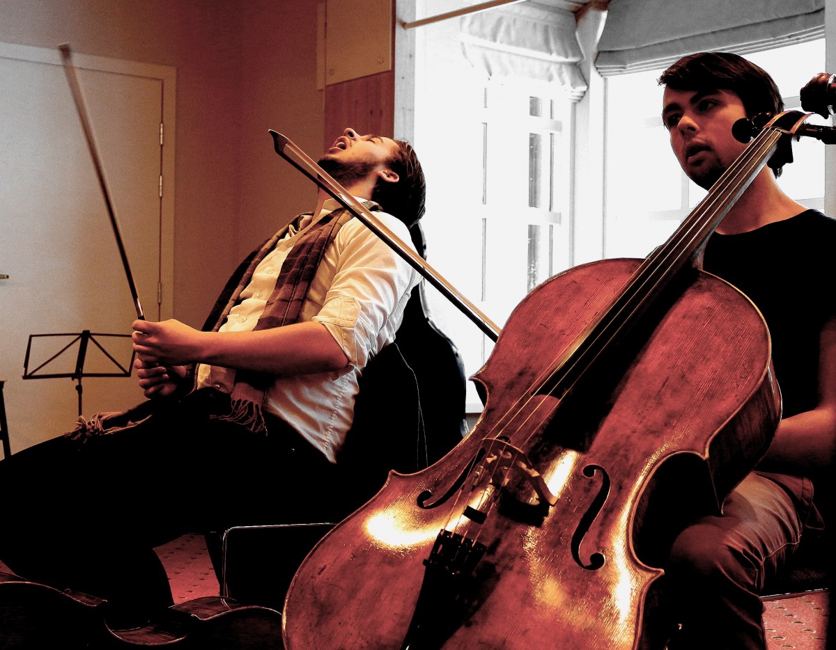 A cellist having a Walt Whitman moment. Bjørn Sanders and Theodor Lyngstad at Lysebu. 24 1 15