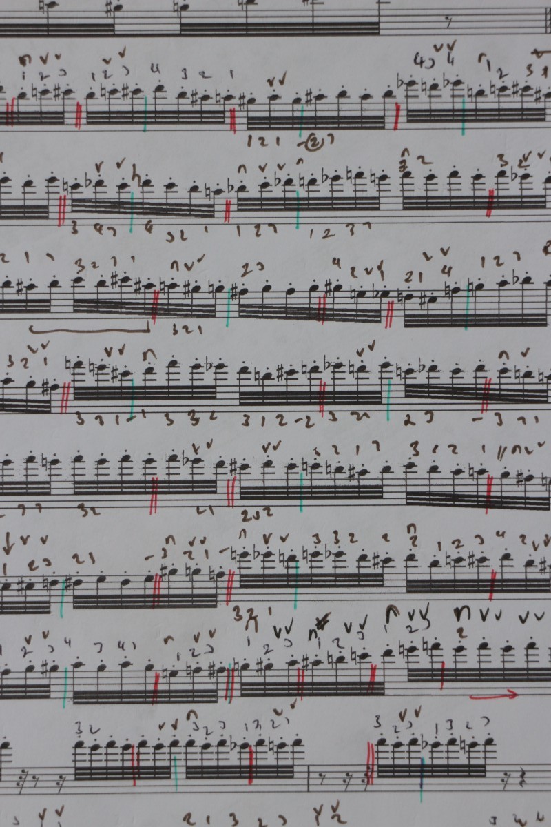 Gregory Rose writes”I heard Peter playing at a concert at Goldsmiths, University of London, earlier this year. We had met sometime in the 90s and had lost touch, and I saw he was doing repertoire that I love, including pieces by Nono and Cage that I hadn’t heard before, and I remembered how struck I had been by his playing when we first met. I was immediately struck by Peter’s wonderful playing in this recital, particularly on two levels: his deep attention to detail at every level and his beautiful sound. Here is, clearly, a player who has tremendous respect for the composers and scores on which he works. After the concert I immediately asked if I could compose him a new piece, and, fortunately, he was very positive, even though he would have had very little knowledge of my type of music. Over the following weeks I kept on hearing snippets of him playing in my head, and it didn’t take me long to formulate a short group of three studies for him that I felt would explore some of his magic! I played the violin from the age of 6 until I was about 26, so have a long-standing fondness and good knowledge of the instrument. The movements, being studies, explore one aspect of sound in each movement; the first (marked “Expressively, but always soft”) concentrates mainly on the middle and low parts of the instrument, always on the soft end of the spectrum, in a meandering, rhapsodic stream, with a tiny, high group of notes acting as a miniature refrain. (You could play this, if you want?) The second movement (“Skittishly”) uses fast, high notes in a fragile world at the top end of the instrument. The third study (“Warmly”), finally uses all of the instrument, with much more scope for expression, and ending with a fast flourish. Peter’s input into this small collection of pieces was so wonderful that I now want to write more and more for him!”