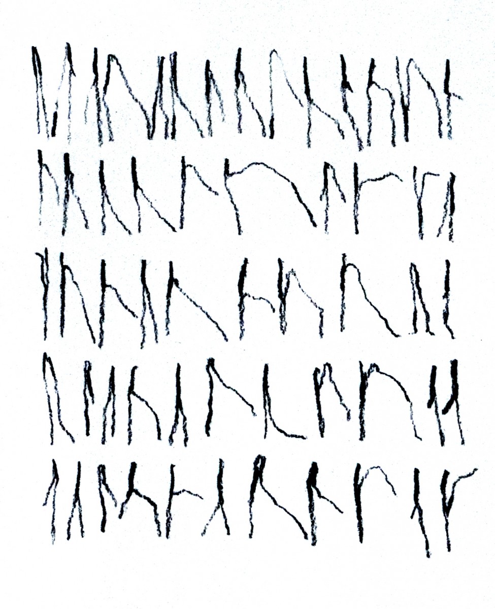 But it’s not just the opportunity to work in peace and beauty. Lysebu has a collection of Groth drawings, including a group of three hanging a few metres from our room. So I have begun work with a response to these, the next step in my ‘Futhork for Jans Groth’.