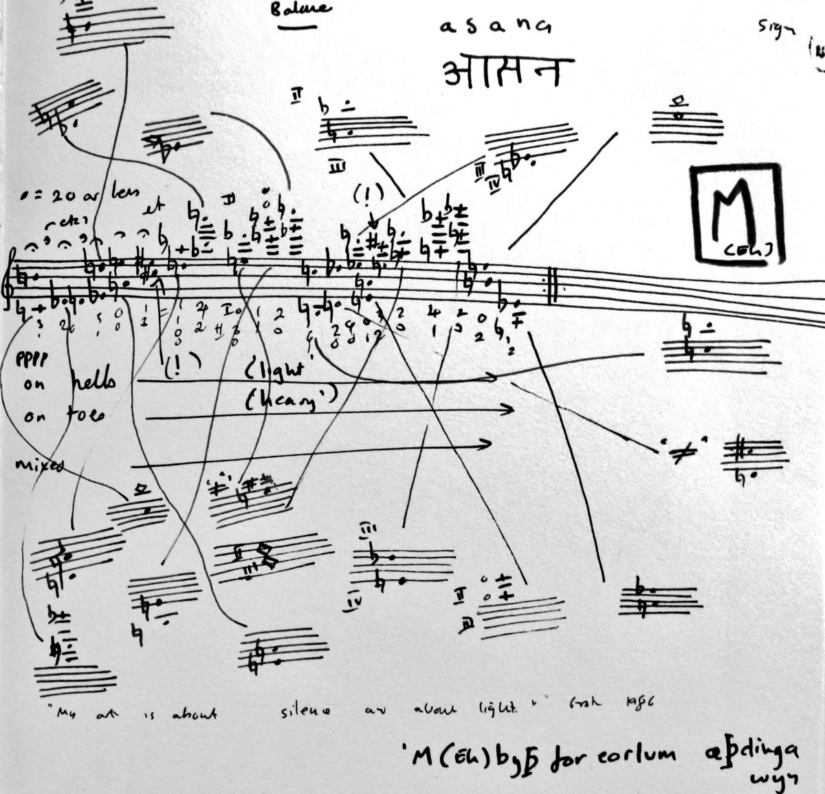 The series of caprices is beginning to grow, and with it, the notion of refrain of ‘choraler’. Here’s the sketch material, for ‘Chorale 1’