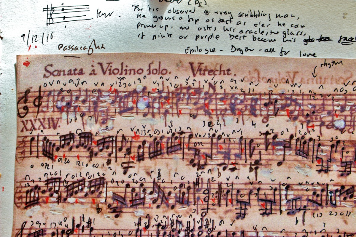 Here at the desk, this morning, more from the Rost Codex-a Sonata for solo violin scordatura, which you will see purports to be by Heinrich Utrecht (fl.1630).