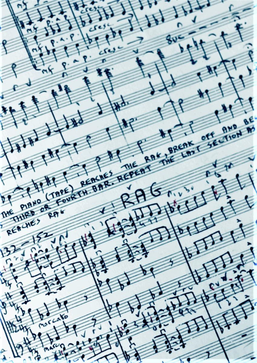 ‘The work is based on what I can remember of a Piano Rag I wrote as a student and later destroyed. The music arises from the process of trying to recompose this incompletely remember Rag, as well as from my more recent [this note was written in 1976], which is often claimed as America’s classical music’ Peter Dickinson