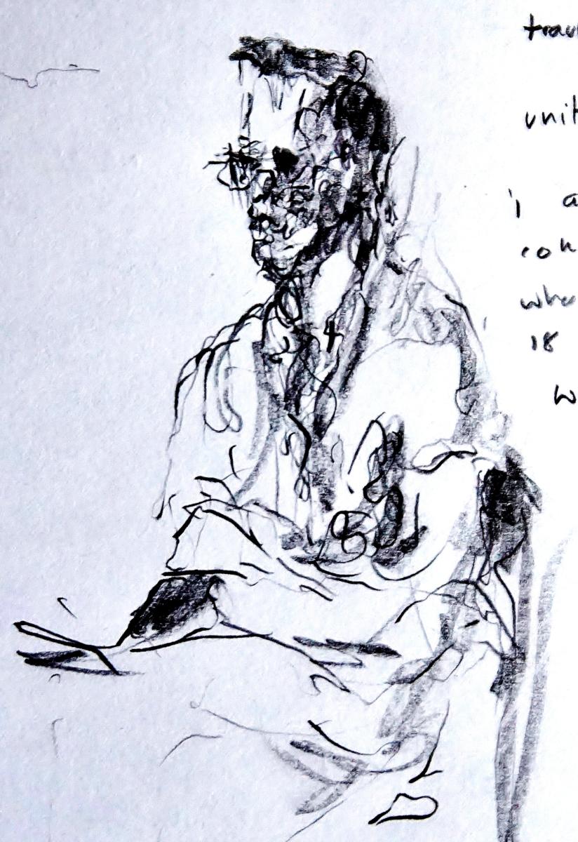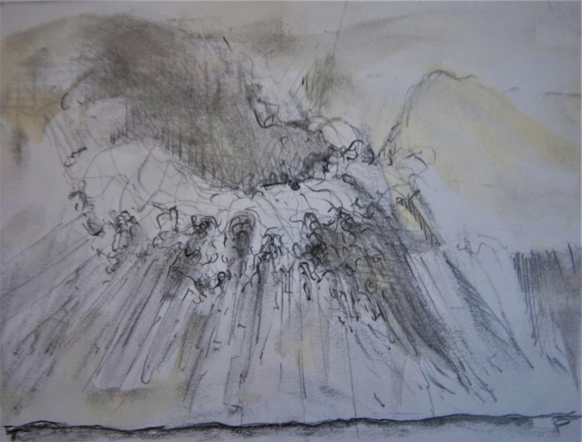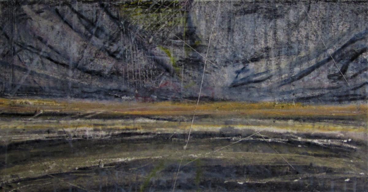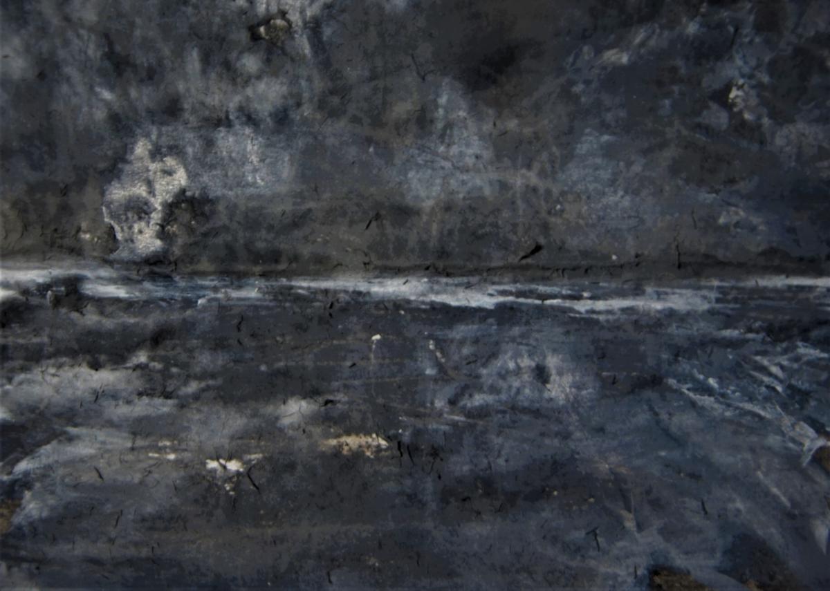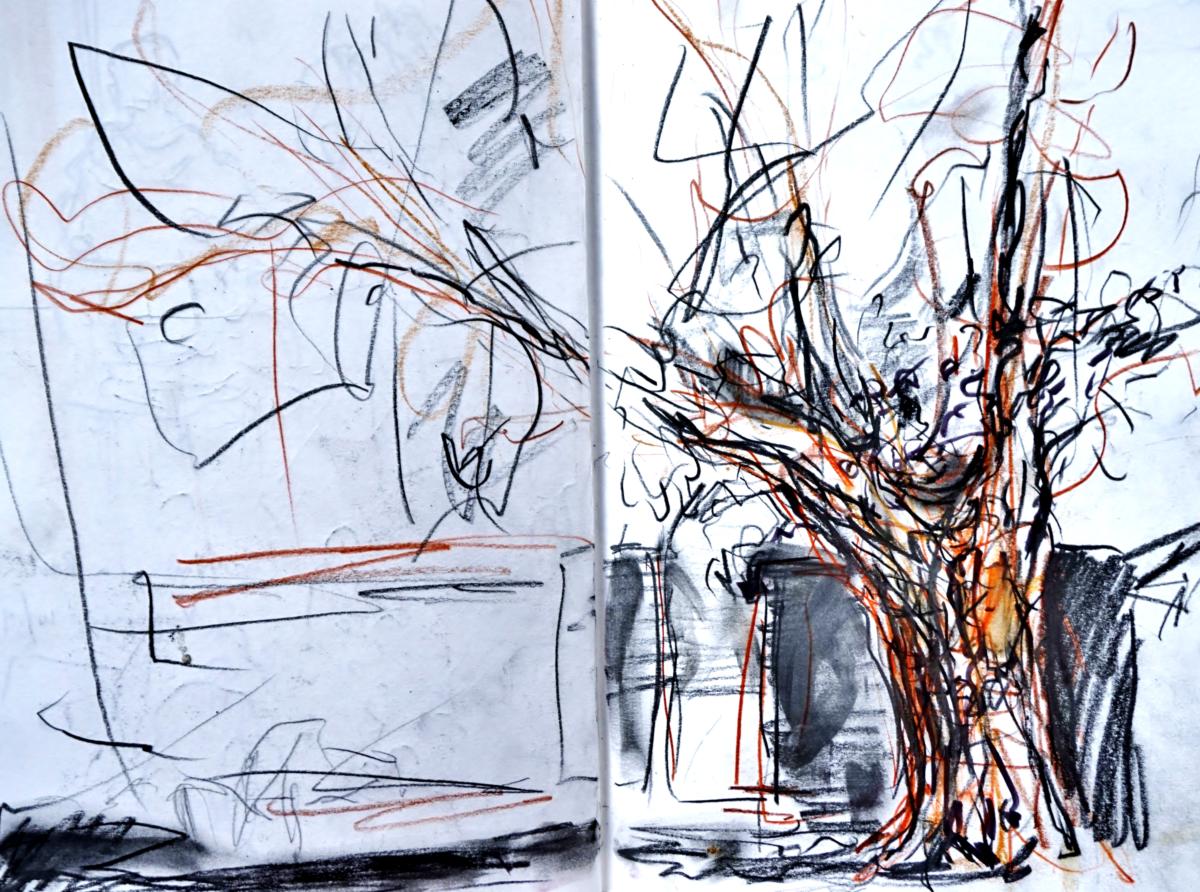 330pm. NNE from Herne Bay. Ship starting engines, hull down. Contrails for Peter Lanyon. A word about painting/drawing and walking. Whilst I carry a sketch book when I walk, the majority of notes that I take are in incomprehensible shorthand. The images that strike me have nothing to do with the photographs that I take. As I walked down the cliff to the front at Herne Bay, the light was darkening from by left (the South), whilst the sky to the north was still light. For about 15 minutes, the horizon the the north was smudged with a filthy stack of smoke, which seem to be from a vessel hull down (more than 7/8 miles away, seen from sea level). The image crystallized this evening, and the ever-present jet trails over the Thames estuary nudged me towards Peter Lanyon’s work. A hero of mine. 27 10 18